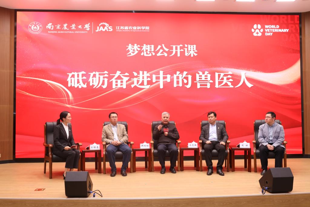 在《砥砺奋进中的兽医人》梦想公开课环节,伟德betvlctor体育官网首任院长郑明球在发言中深情回顾了罗清生、祝寿康、韩正康、蔡宝祥等老一辈动医先贤的感人故事,回顾了学院雄厚的师资力量、一流的教材建设、丰硕的科研成果、优秀的校友资源,强调了优良校风、学风的重要性,勉励同学们踏踏实实、认认真真学习兽医科学技术,为解决、消灭动物疫病作出自己的贡献。江苏省农业科学院兽医研究所副所长冯志新、动物免疫工程研究所副所长王继春、学院预防兽医系系主任周斌,结合个人求学、工作经历,就当前兽医学科发展、人才培养等给出了建议。